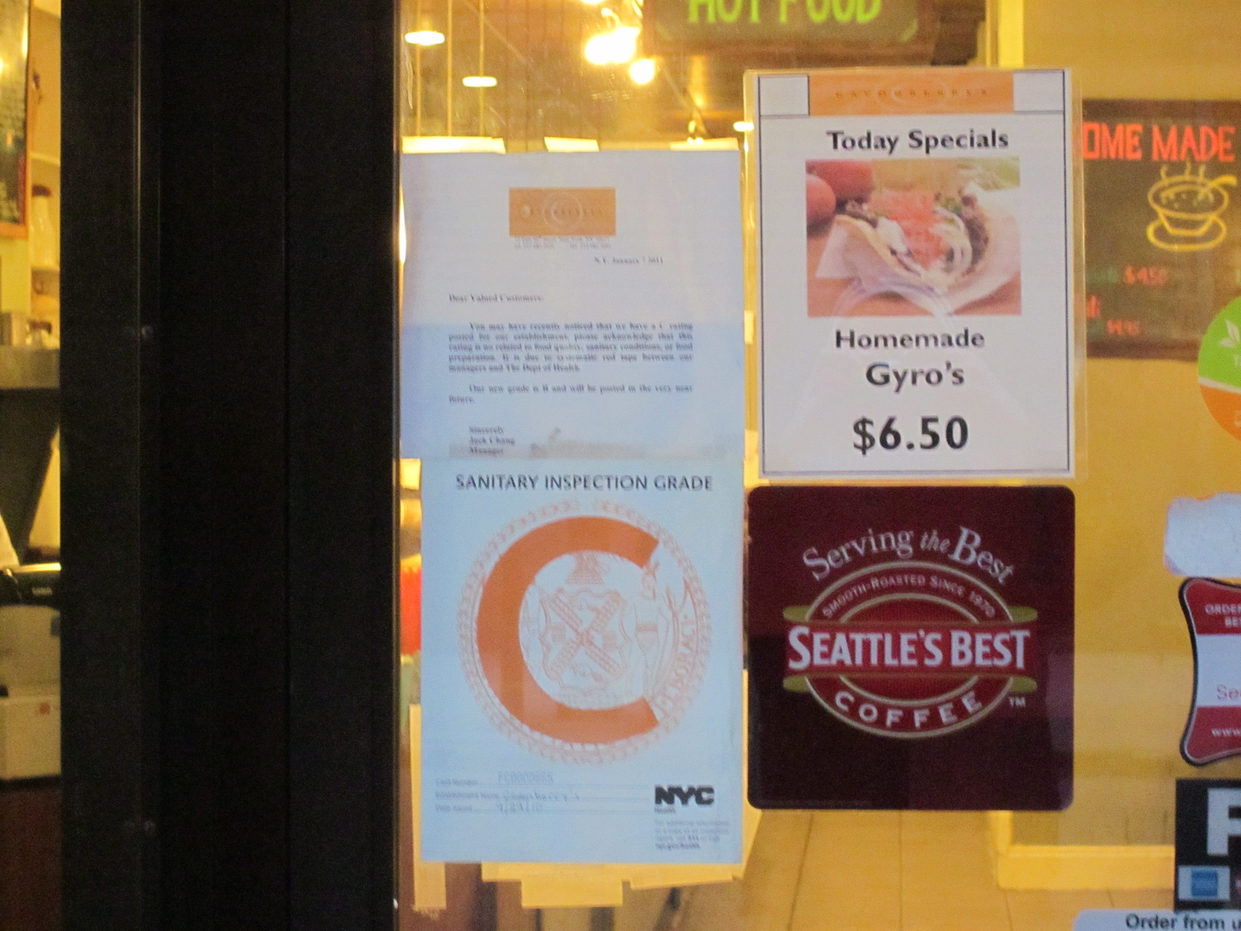 They are everywhere; on Dunkin Donuts windows, Subway sandwich shops, and, like above, in the window of an Ethiopian restaurant. Their smug perfection is right up there in your face; a constant reminder of the absence of them on so many of my own report cards. Sure, we all strive for perfection, but really, what kind of world would it be if everyone was an “A?” So when, finally, I came across a big orange C, I felt much better.