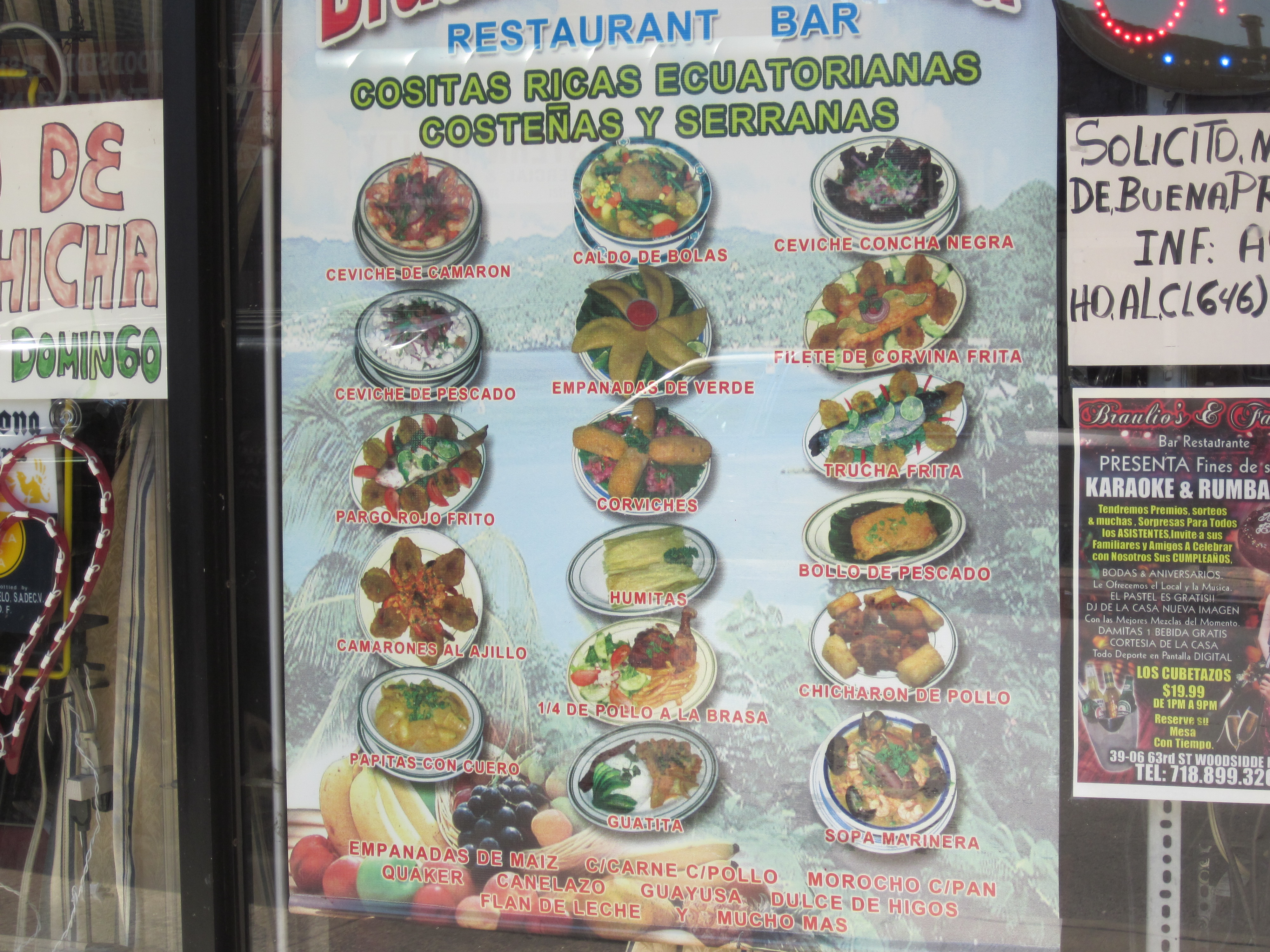 On a recent visit to, I passed Braulio’s & Familia. They have prospered since our 2005 visit and on the take out menu I noticed that they now have karaoke on the weekends and that the ball soup is still available. Their menu also claimed a website but when I tried it at home, it came up blank. Charlie has not returned to the group since our visit to Braulio’s & Familia, though Mike from Yonkers has become a mainstay. You will read much more about him in the posts to come here on the Adventures of Chow City segment of Fried Neck Bones…and Some Home Fries.