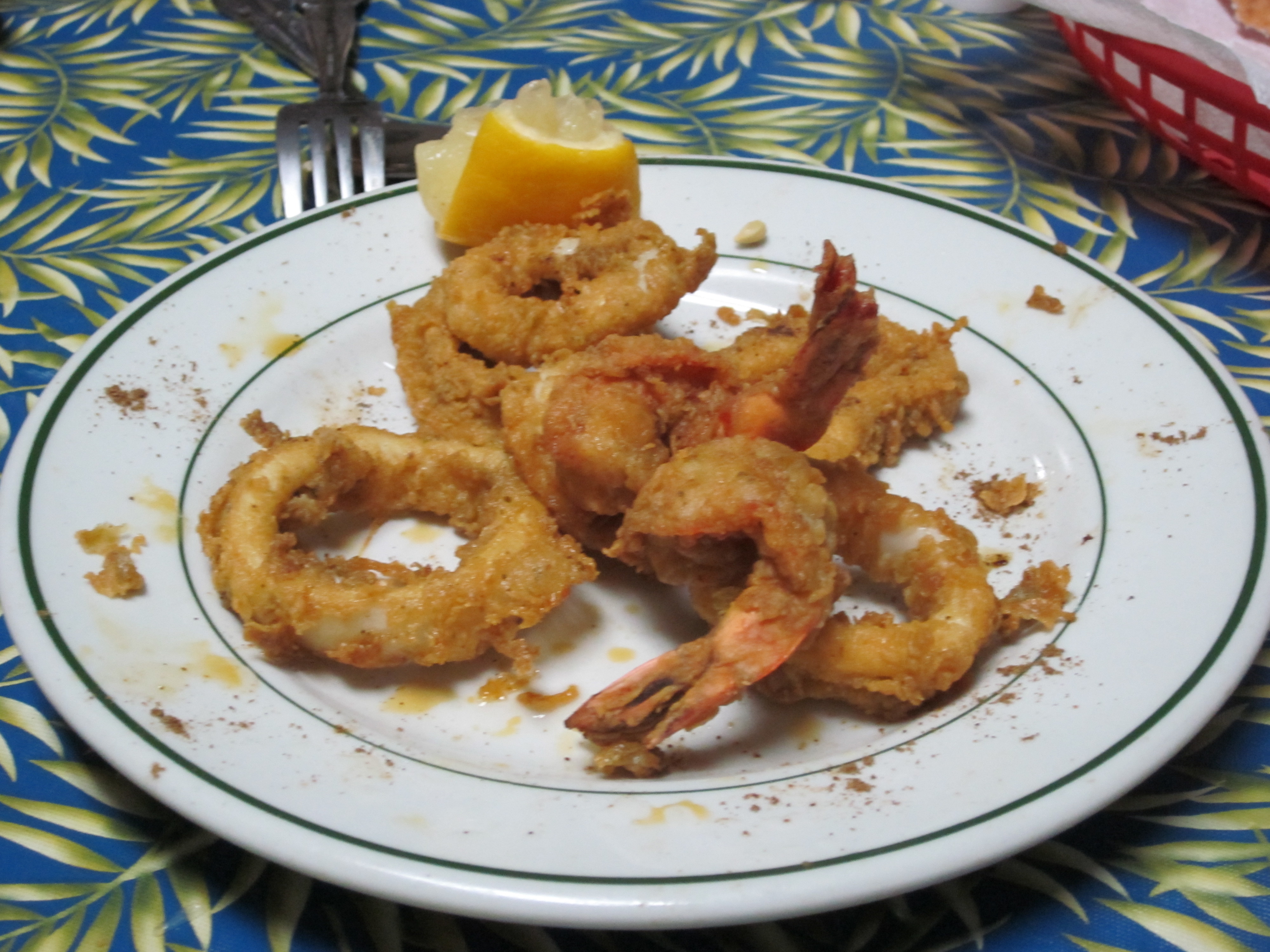 It was all simple enough. The question was how much to order and whether the fish should be fried or grilled. We compromised on fried shrimp and calamari along with one fried fish and one grilled. I don’t think we specified which fish should be fried or grilled; the branzino or the sea bass, and when they arrived, none of us could tell the difference.
