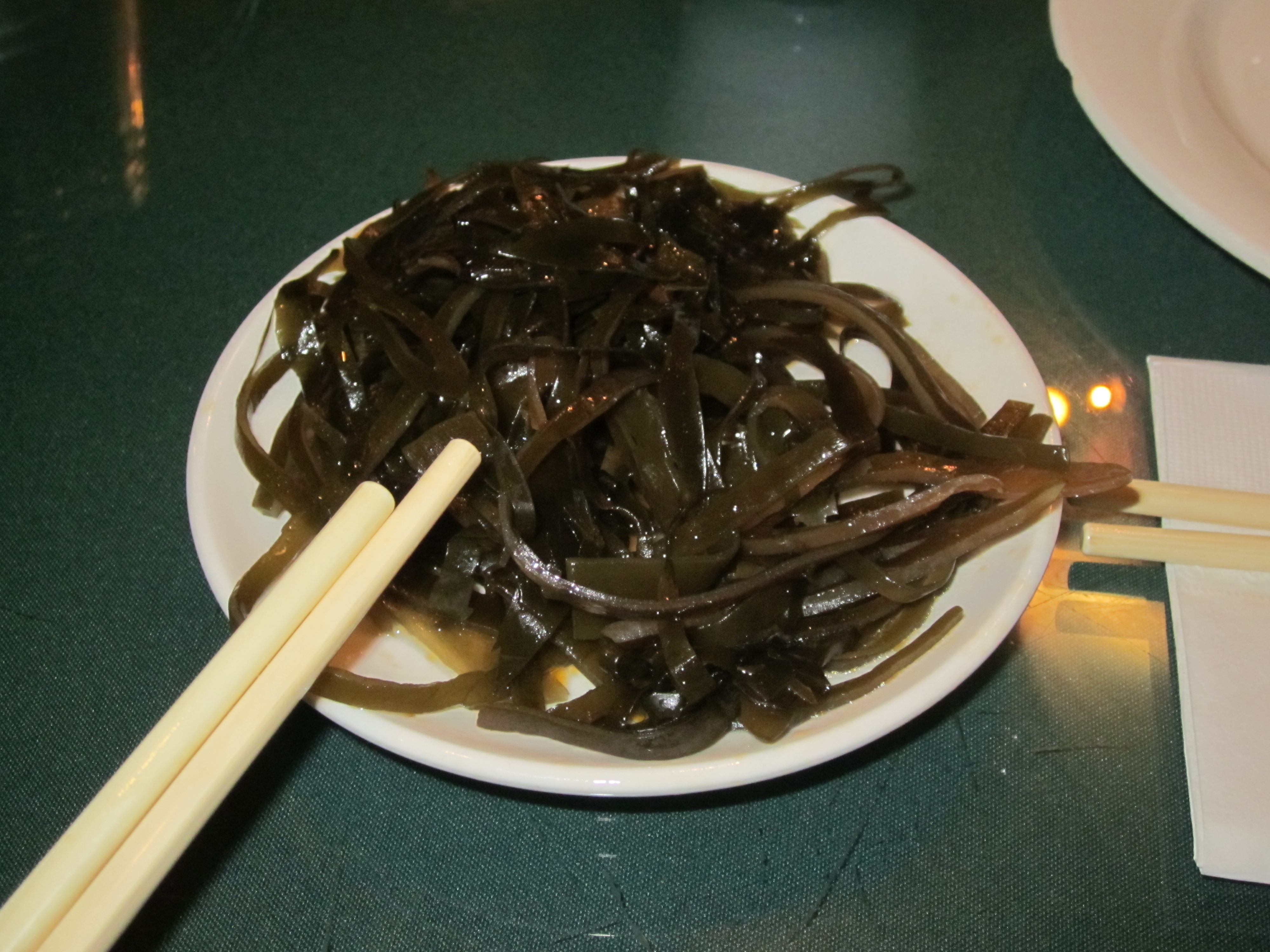 Before Zio could order his obligatory diet Coke (with lemon), the waiter brought us a plate of seaweed along with tea and ice water. Gerry and Rick arrived soon after. Gerry announced that Eugene would be a no-show due to a rare work commitment and that he just got a text from Mike from Yonkers that he would be a half hour late.