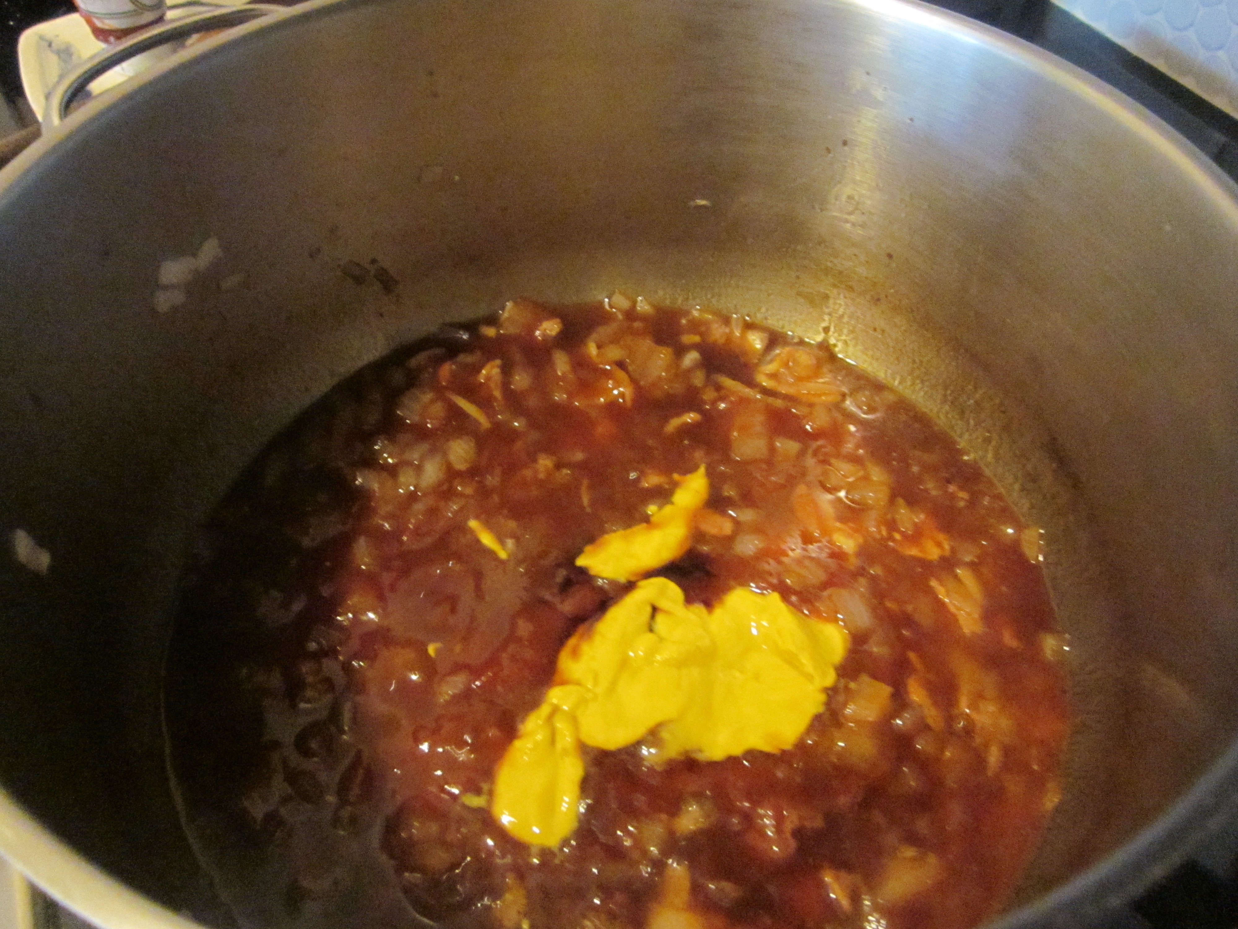 Add the ketchup, molasses, brown sugar, mustard, Worcestershire sauce, and vinegar.