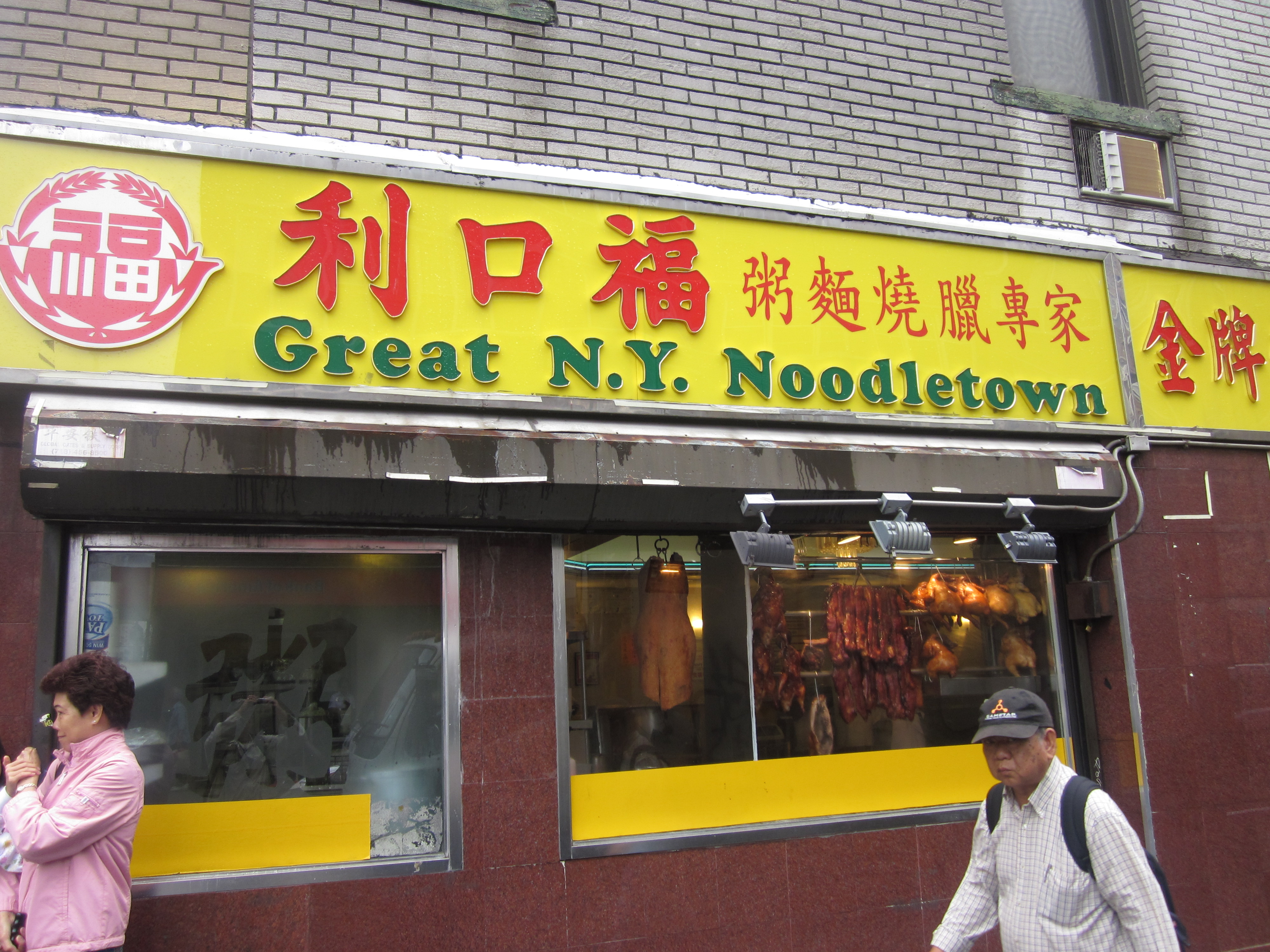 On an overcast morning, I found him loitering next to Great N.Y. Noodletown on the Bowery in Chinatown. One of the elderly women that Luigi had observed were so prevalent in Chinatown (The Chinatown Congee Wars: Part One) was sitting next to where Zio was standing, selling umbrellas, a handkerchief covering her mouth. Was she ahead of the whooping cough curve, or was the precaution a leftover from the bird flu epidemic? Zio didn’t seem to mind the close proximity and as soon as I arrived, we went into the restaurant.