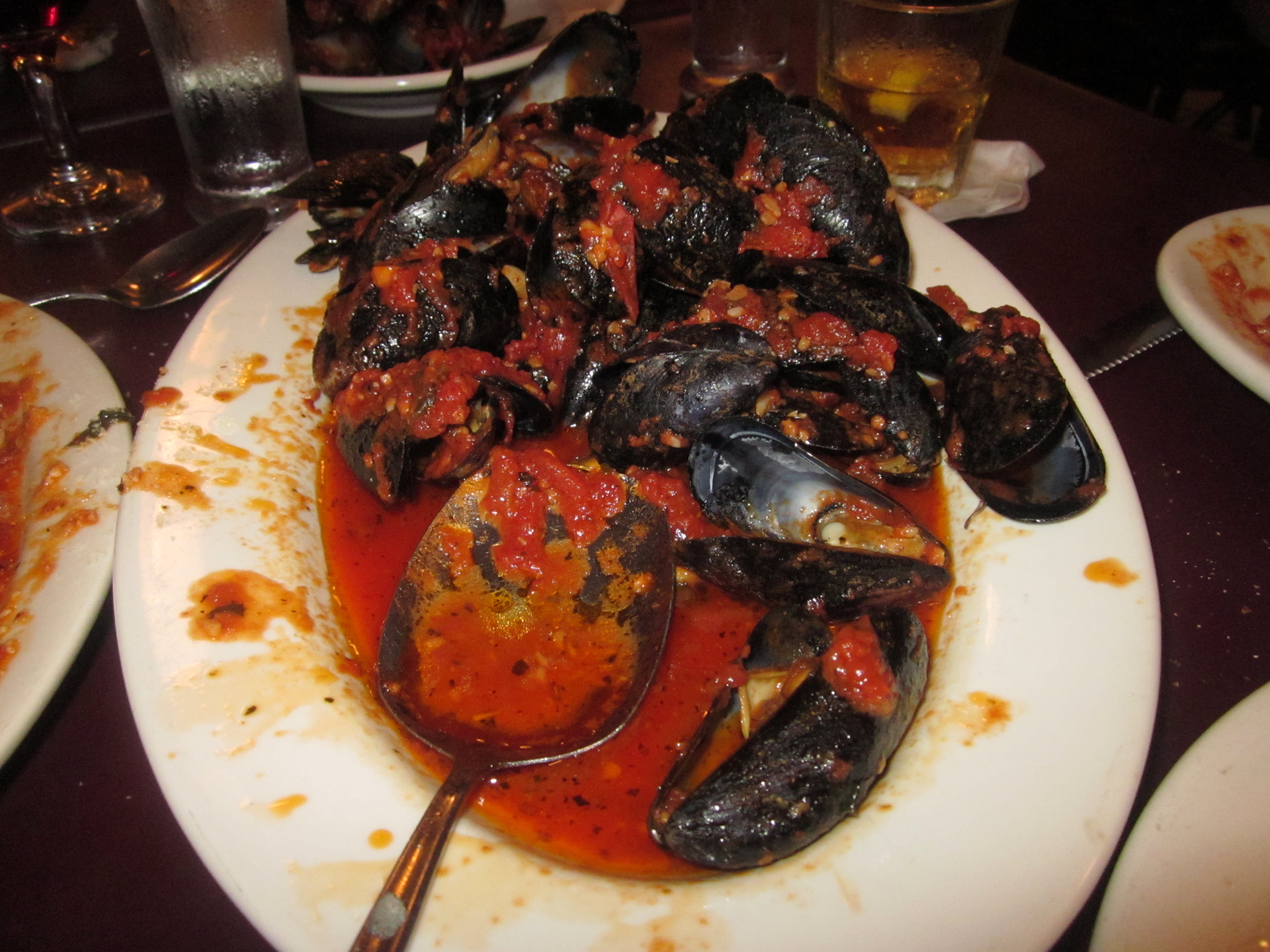The big platter of mussels took up most of the room at our table. Gerry and I worked methodically through the mound, plucking the sweet tiny bodies from their shells and swirling them in the garlicky, wine infused marinara sauce.