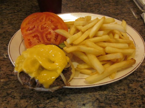 Once done, some cheese (for a few coins more) was melted onto the meat. The patty was then was put onto a bun with a leaf of iceberg lettuce, and a slice of tasteless, out-of-season tomato. In various instances, a pickle and grilled or raw onions were also added to the bun. The burger was assembled onto a plate surrounded by French fries. This was the prototypical “Burger Deluxe” found at countless diners, luncheonettes, and coffee shops when I first moved to New York. And I ate at a lot of them.