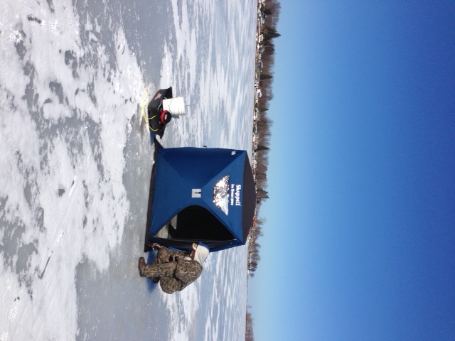 At first I thought this could only be another of Gerry’s sick jokes; after all, the idea of sitting outside in frigid temperatures in the middle of nowhere waiting for something to nibble your rod through a deep hole in black ice could not possibly be more enticing than choking on hot peppers with two of his fellow gluttons. After some prodding, however, we found out he was indeed serious. We were getting close to the end of this very long winter, but Gerry wanted more. And who were we to deny him his pleasure—not matter how perverse it might be?