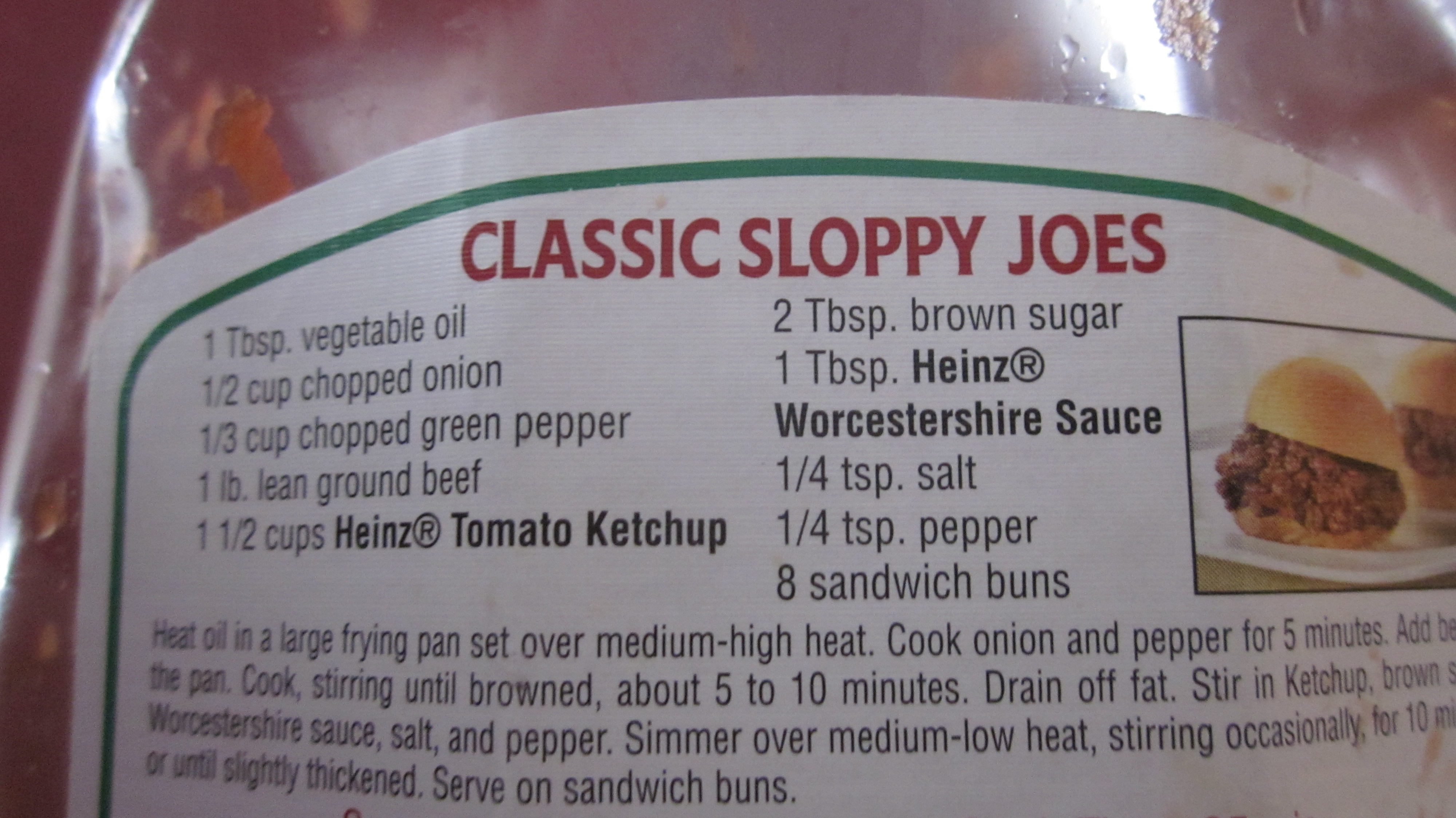 Even without the using dry seasonings or the “Manwich” version, the recipe looked simple, as it should be. But once I began preparations, I noticed a potential problem: the recipe called for one and half cups of ketchup plus two tablespoons of brown sugar. The brown sugar combined with the “high fructose corn syrup” already in the ketchup was going to make this a sweet Sloppy Joe. Maybe it was always too sweet and, as a kid with a serious sweet tooth, I just didn’t realize it. Now as an adult with a somewhat mellower sweet tooth, would the Sloppy Joe be too saccharin for my taste? Should I go with my instincts and alter the recipe eliminating either half or all of the brown sugar. I decided not to do anything and if needed, I would do damage control after the fact.