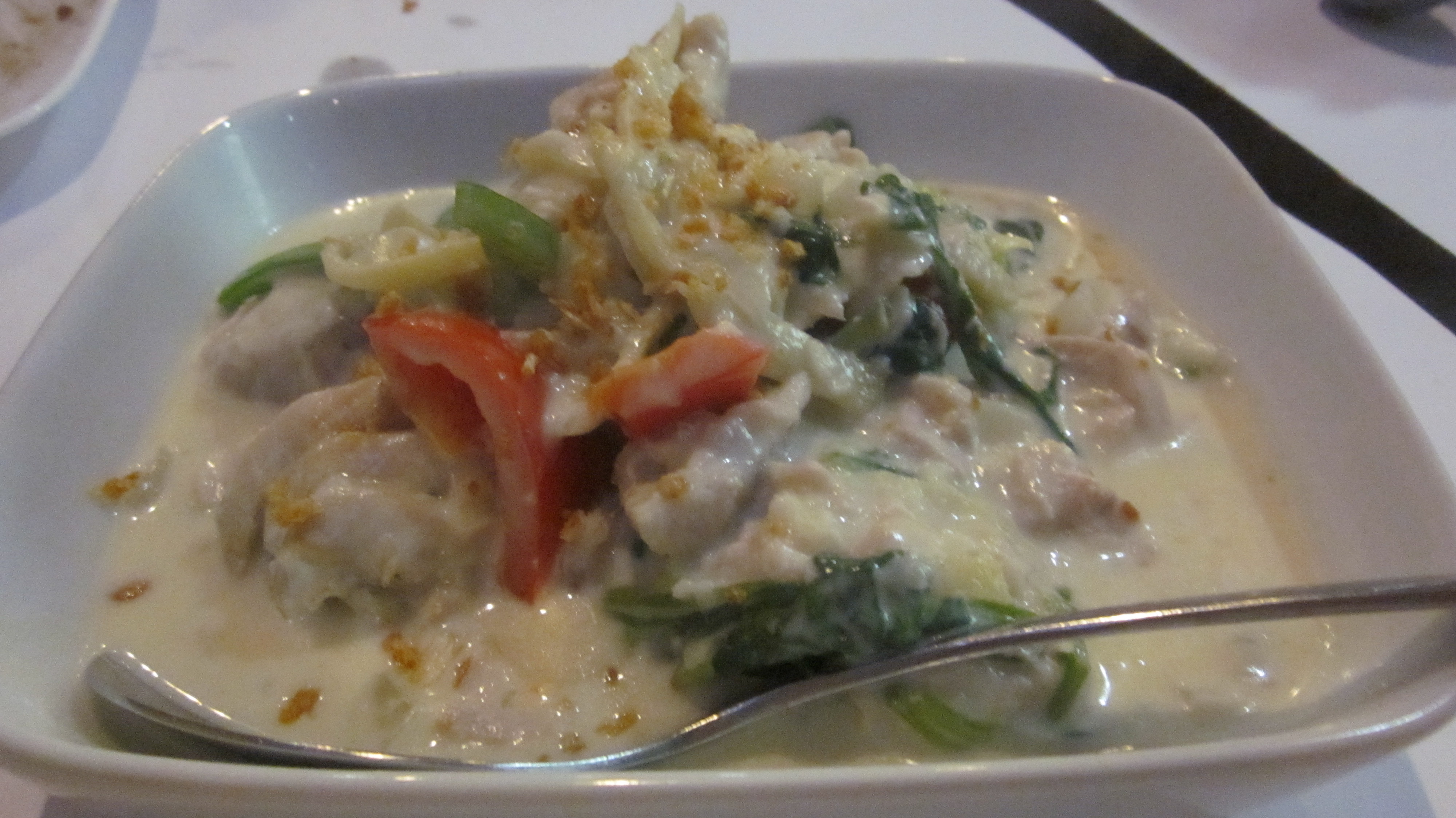 The entree options were vast and the choices many, but I quickly chose a Filipino standard, beef adobo, while Gerry went with my second choice, kare kare, oxtail in a peanut sauce, and Zio, also preferring beef, ordered the beef kaldereta, a supposedly spicy version of beef stew. Eugene is a coconut milk aficionado and ordered the manok sa gata, chicken with ginger in coconut milk.