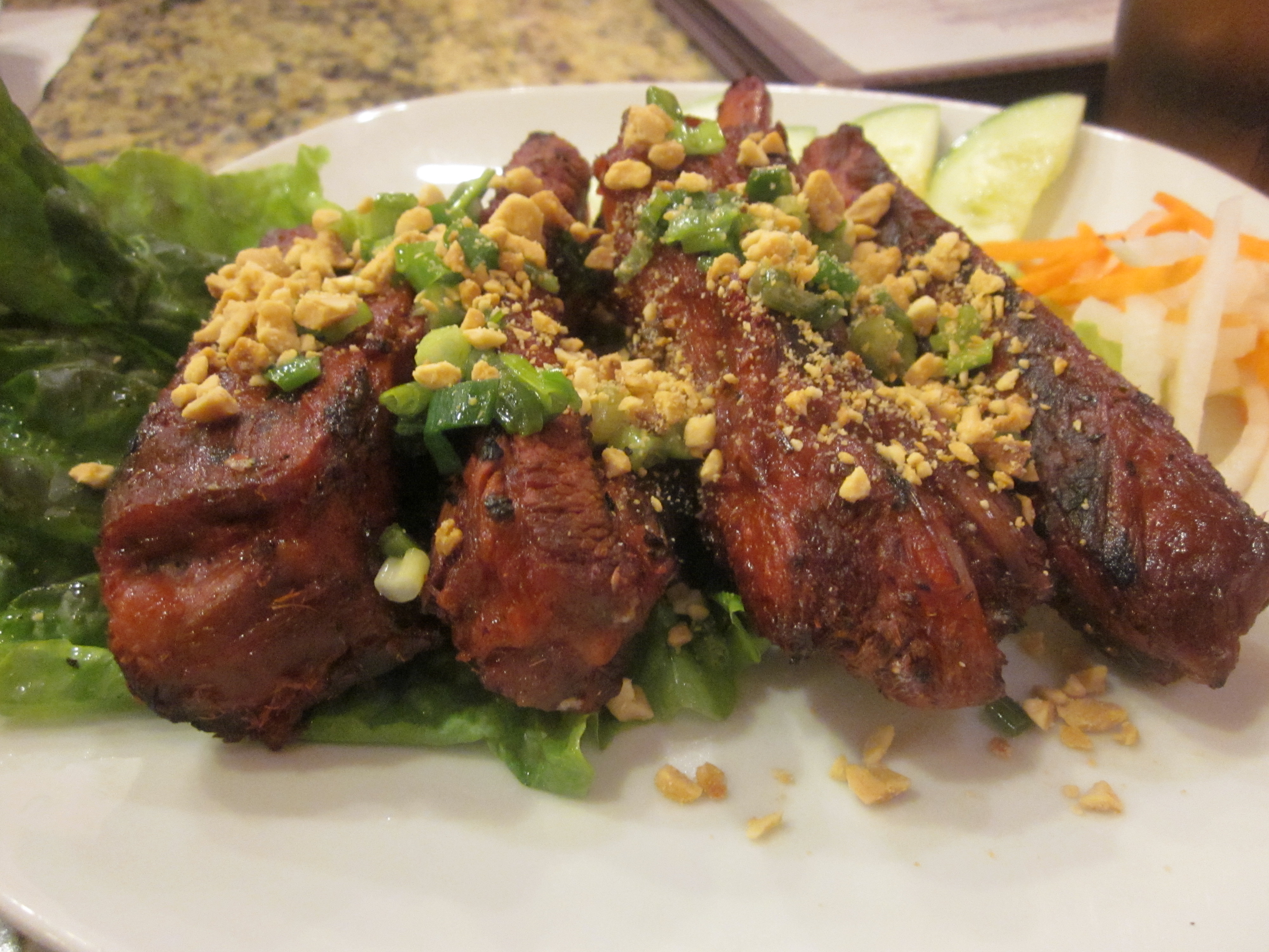 For starters we ordered the exotic Saigon rolls and vegetarian summer roll along with the grilled spare ribs and the Vietnamese crepe, Saigonese style as if we knew any other style of Vietnamese crepe.