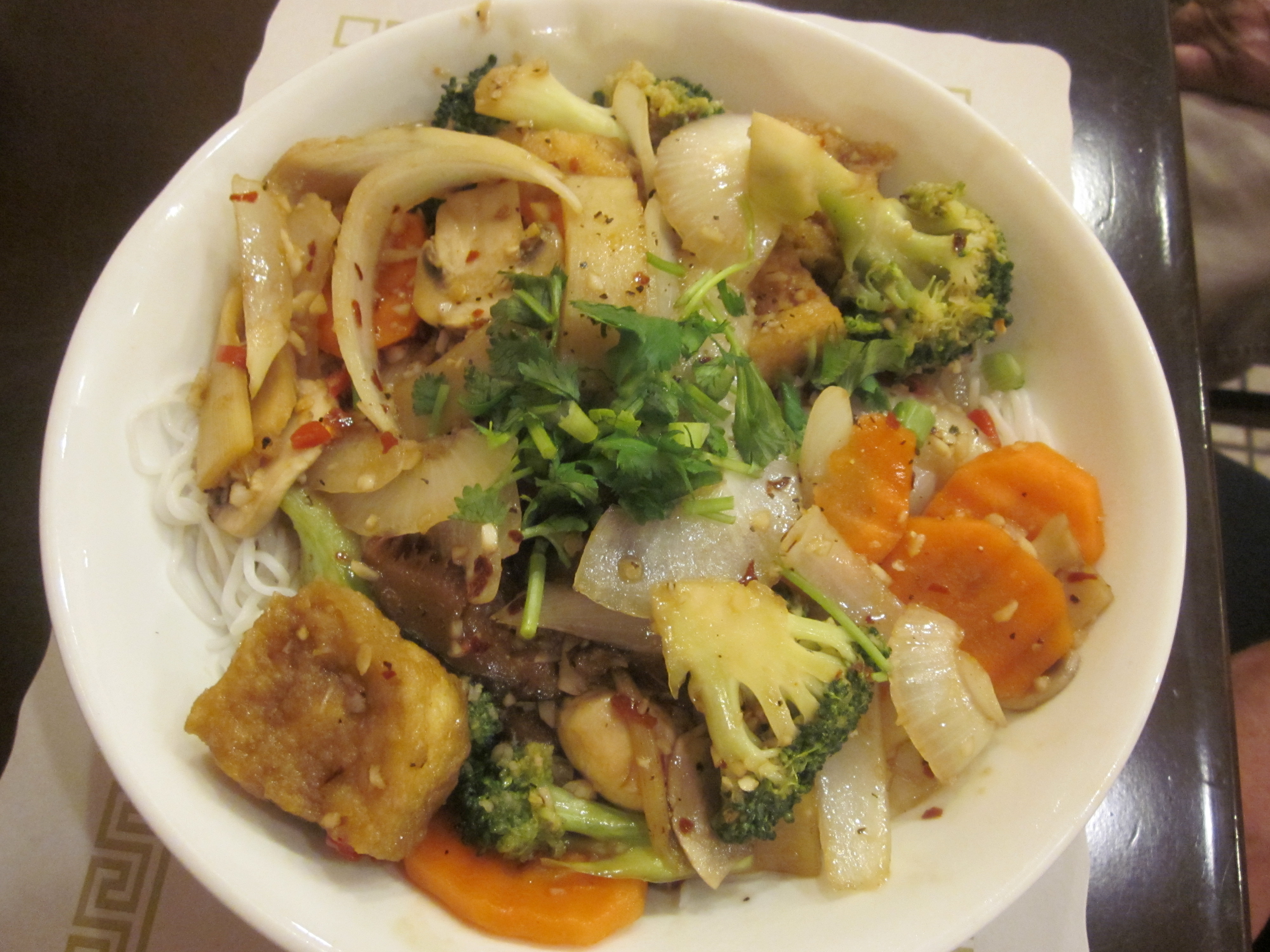 Inside the structure were an assembly of small tables; two were pushed together to make room for our party of five. Brightly lit with windows overlooking the adjacent gloomy stretch of landscape; muzak flowed from the restaurant’s sound system mirroring the dreary ambiance. But ambiance was not what our Chow City group was about. We’ve eaten in dumps without heat or air conditioning, off Styrofoam plates with thin paper napkins, but also where the food was so full of flavor, so memorable that it didn’t matter that you wouldn’t dare venture to the rest room—it was what we shoved into our mouths that counted. I was hoping that would be the result at Saigonese.