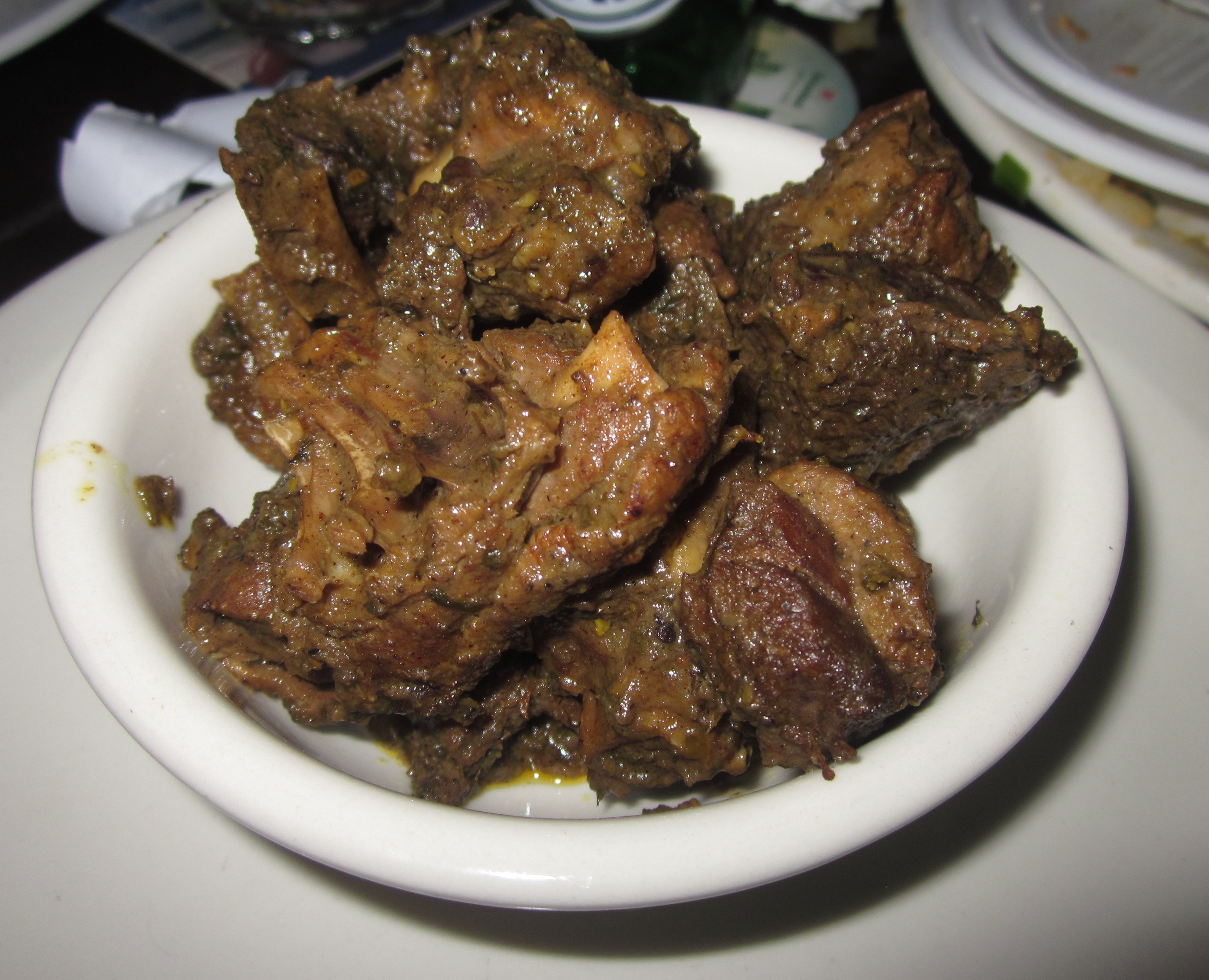 Though Guyana was a long way from Jamaica, the birthplace of jerk chicken, like all of the Caribbean, jerk has become a staple in that region and both Eugene and Zio ordered it at Melanie’s while Gerry, disappointed that there was no more goat available that day to have with his curry, substituted duck in its place. Mike from Yonkers also was intrigued by the duck, among other things, and chose the bunjal duck with Indian dhal and basmati rice.