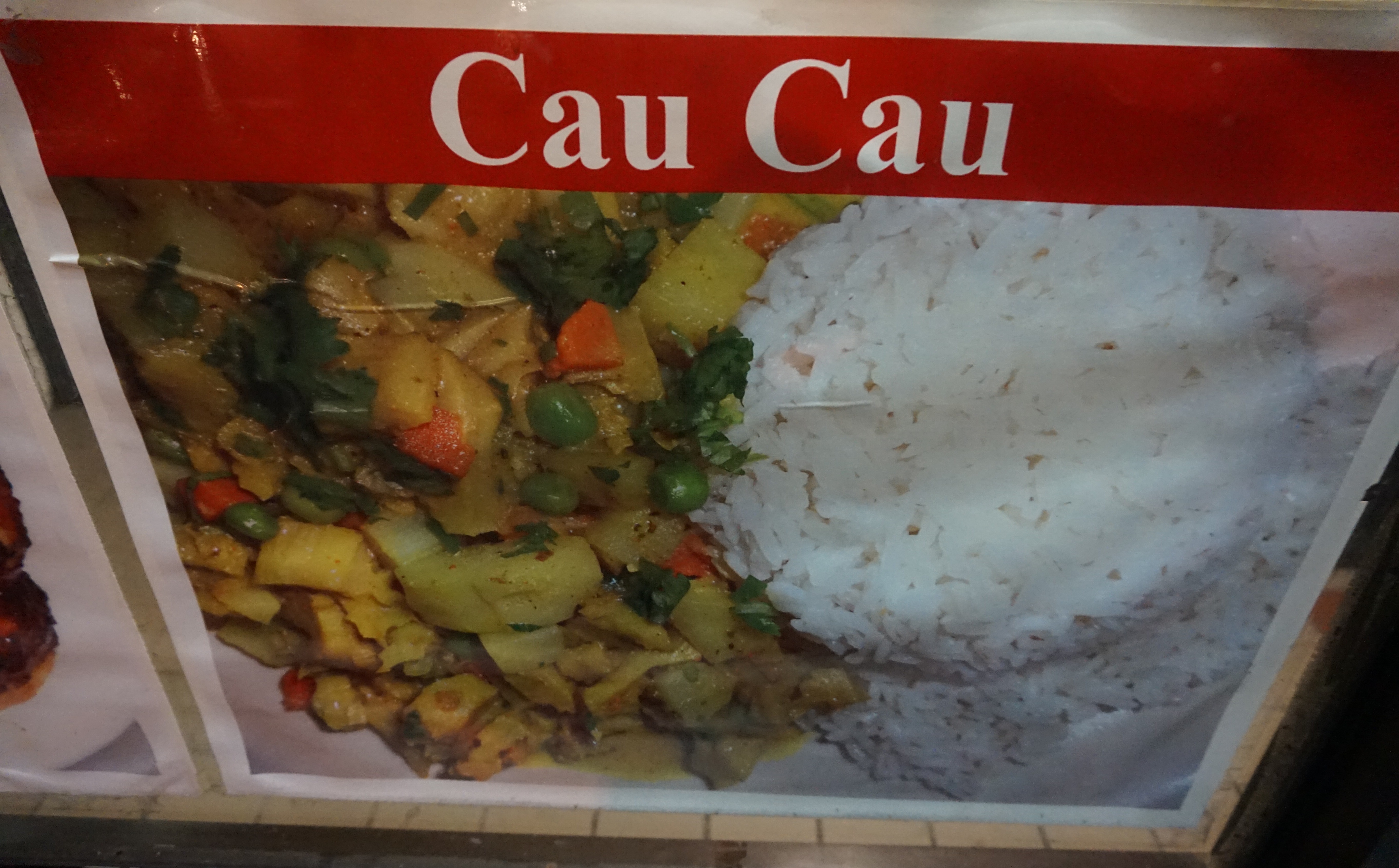 “What is cau cau,” I asked the waiter. There was a photo of the dish in the window of the restaurant, but I could not identify it.