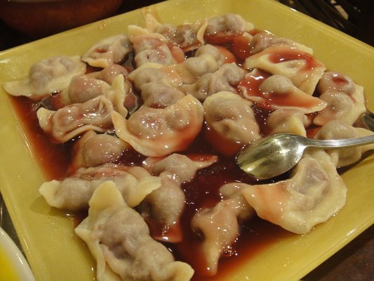 When Waiter Number Two came to take our dessert order we were hesitant. We made the mistake of asking what was on the dessert menu. He responded brusquely with “fancy cake and cherry vareniki.” We shrugged; we would try one of each for the table. Apparently he took that to mean we all wanted to try a piece of the “fancy cake,” so he returned with six pieces of a non-descript cream-filled cake along with a huge platter covered with 100 pieces of vareniki dripping with sour cherries and their syrup. To Zio’s failing eyes the platter looking like what he called “cherriolies,” or cherry ravioli. I tried a few but almost lost a front tooth when biting into the so-called pitted cherries.