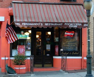 The red flags went up soon after I sat down at Ferdinando’s Focacceria Ristorante on Union Street in the Carroll Gardens section of Brooklyn. Just a short walk from Rick’s apartment, Ferdinando’s was his pick, the last of our first go-round at this food adventure thing. The red flags were up because of what I noticed on the restaurant’s ancient (circa 1904) brick walls; plaques with a commendation from Zagat and another with a printed review by Eric Asimov of the New York Times in the $25 and under column he used to write. His review of Ferdinando’s appeared in 1993 when $25 and under went a longer way than $25 and under does now. And anyway, our aim wasn’t $25 and under, it was $20 and under. And commendations from popular guides like Zagat and of course from the Newspaper of Record meant that this was far from an “under the radar” establishment. Okay, so every place we go to can’t be a discovery, but could we at least be not too far off? I guess if you’ve been around since 1904 that’s pretty hard to do.