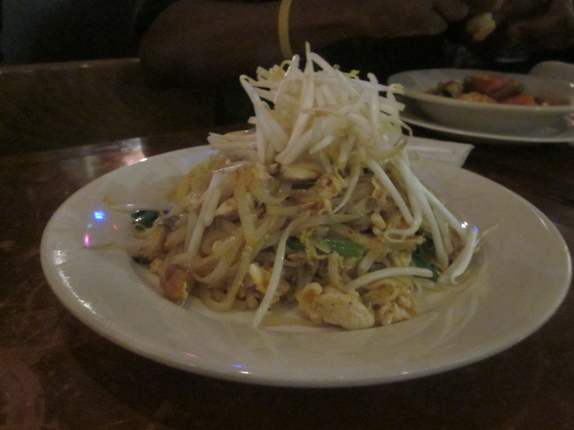 Mike from Yonkers ordered the same, but with shrimp while Gerry braved another offbeat Thai selection; the spinach spaghetti with shrimp. We rounded out our order with Pad Thai for the table.