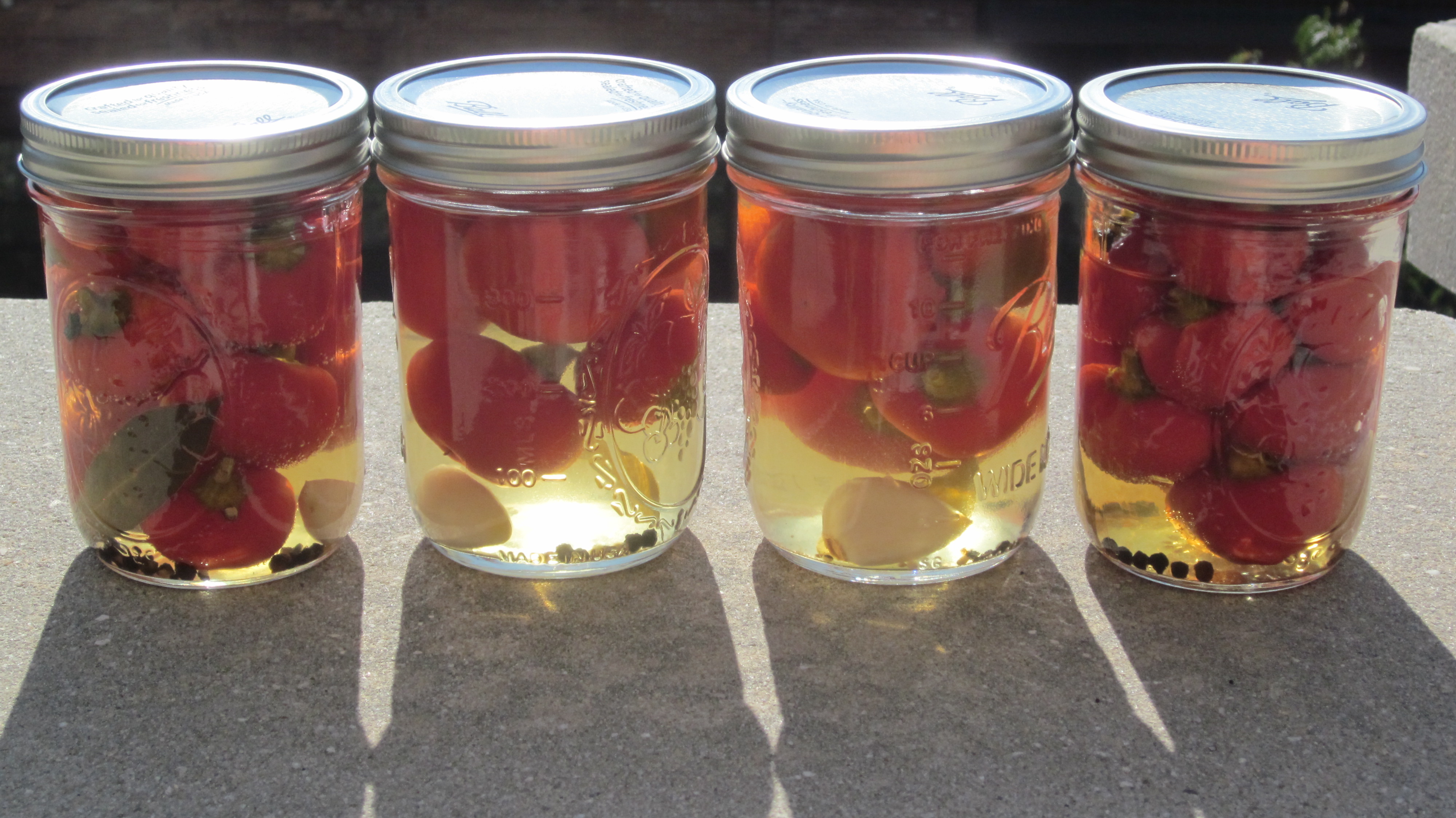 Remove the jars and if you hear that pop signifying that the jar has been vacuumed-sealed or you see that the lid is slightly indented, chances are very good that your pickled cherry tomatoes are properly sealed.